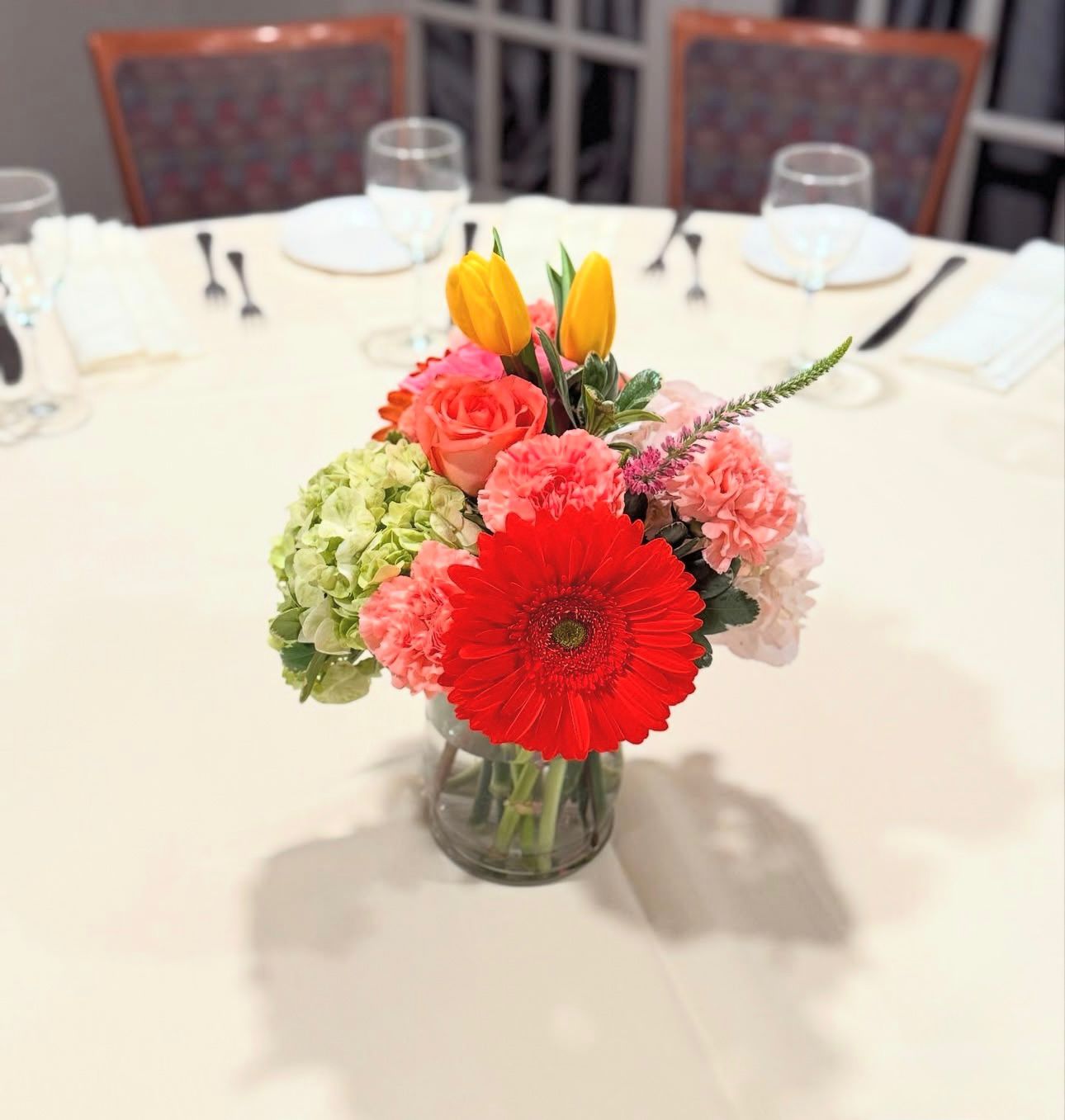 This breathtaking arrangement brings together a vibrant spectrum of the season’s finest flowers, featuring Red Roses, Orange Lilies, Yellow Carnations, Blue Iris, and Purple Asters. Designed to represent joy, unity, and hope, this bouquet is the perfect focal point for any table or event.